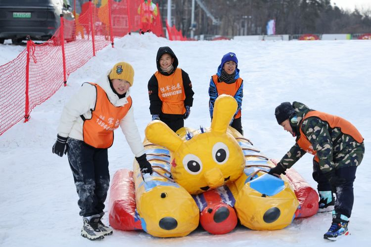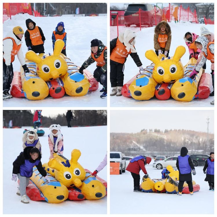 隨后,學(xué)生們進(jìn)行了“雪地毛毛蟲”活動。在潔白的場地上,學(xué)生們猶如一條條生動的彩虹在白雪世界中舞動,眼神中閃爍著期待與興奮。他們緊握著毛毛蟲的操控手柄,默契地協(xié)同動作,使毛毛蟲在雪地中穩(wěn)穩(wěn)前行。冰冷的雪地與溫暖的熱情形成鮮明對比,學(xué)生們臉頰泛紅,洋溢著青春的活力。