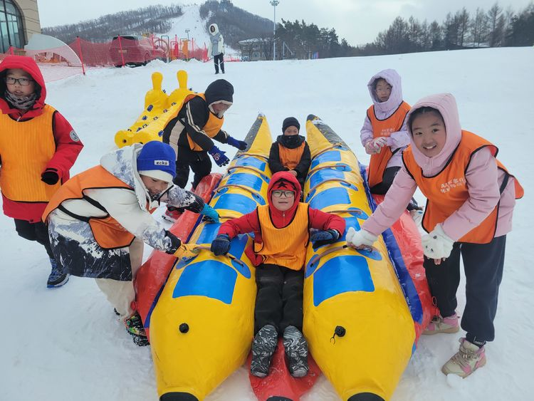 最后同學(xué)們進(jìn)行了雪地香蕉船項目,在教練的指導(dǎo)下,學(xué)生們跨上香蕉船,緊抓船上的扶手,順著雪道滑行,感受雪地坐船的暢快。