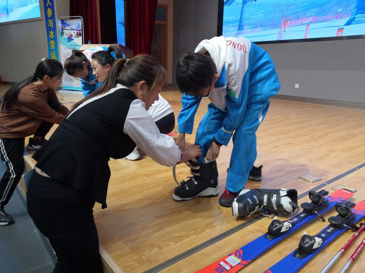 講師們從冬奧會的認知、滑雪運動的歷史、安全滑雪裝備的介紹以及基本滑行的知識等多方面的詮釋了冰雪進校園公益課程的內容。同時還為同學們準備了一些小禮物,把驚喜帶到他們的身邊。